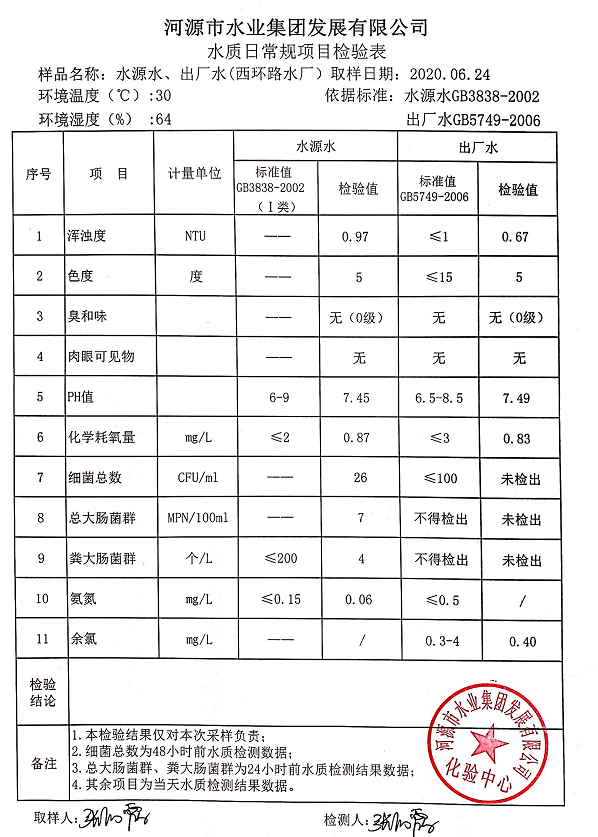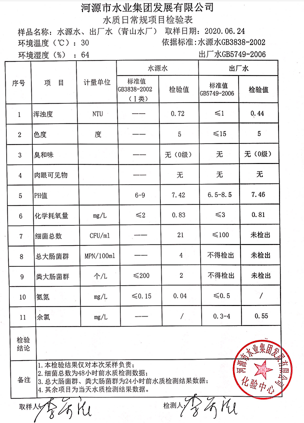 2020年6月24日水质检验报告