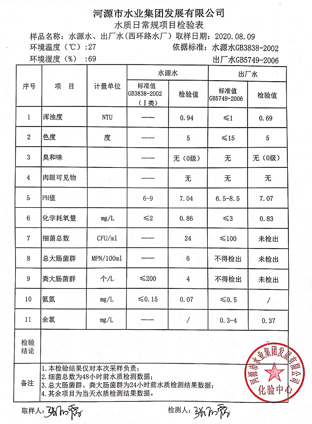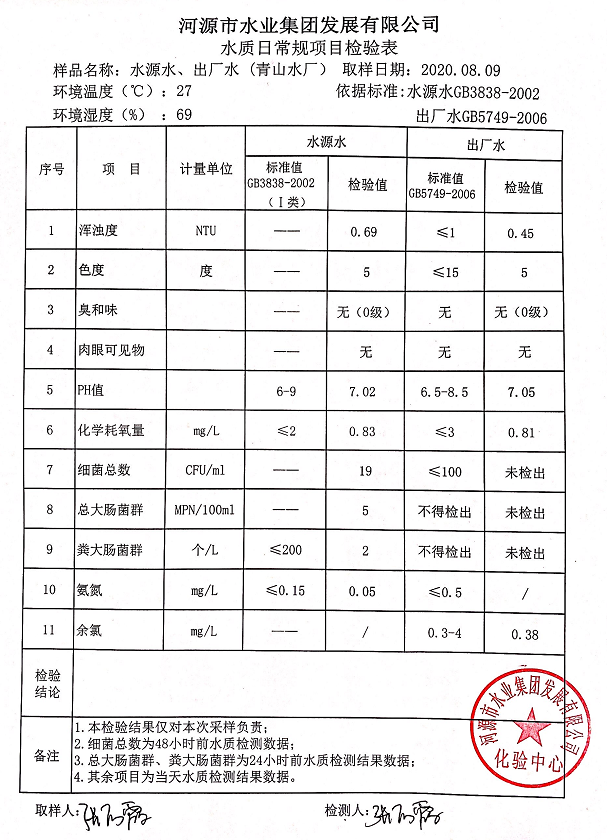 2020年8月8日水质检验报告