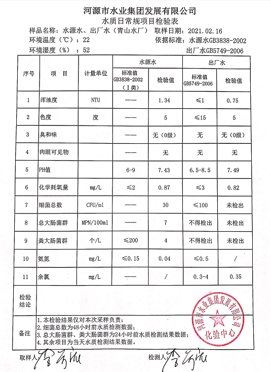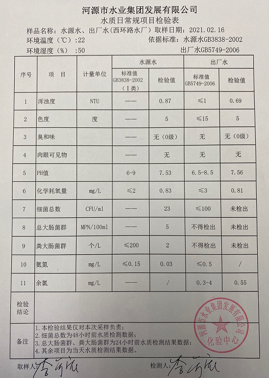 2021年2月16日水质检验报告